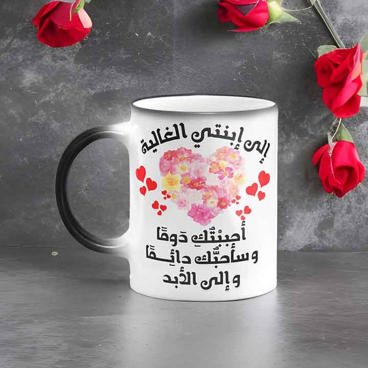 هذا الكأس هدية رائعة للزوج، عندما يكون باردا، يكون أسود، لكن بمجرد سكب سائل ساخن، تظهر الصورة.